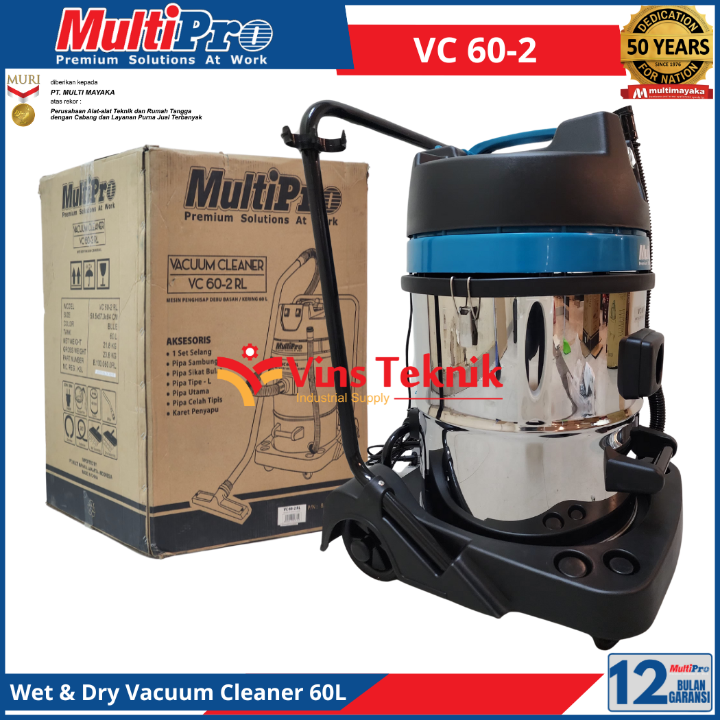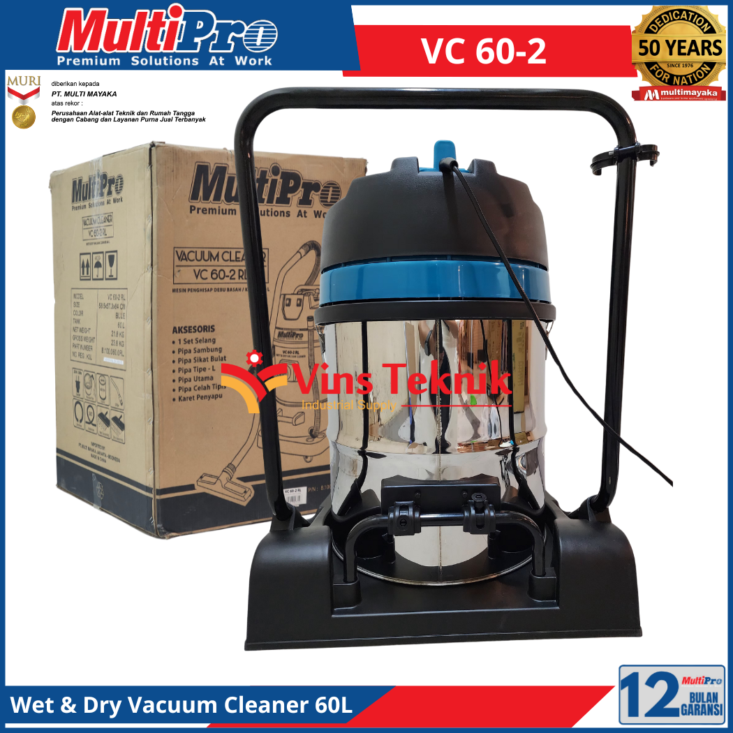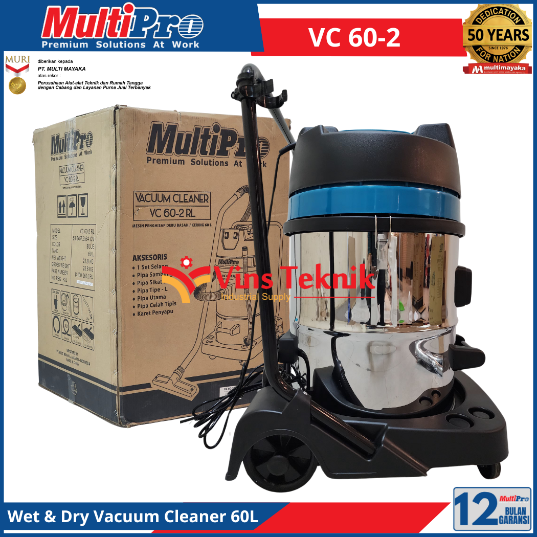MULTIPRO VC 60-2 Mesin Pengisap Debu Vacum Vacuum Cleaner 60Liter 2.400Watt VC60-2 Wet & Dry
